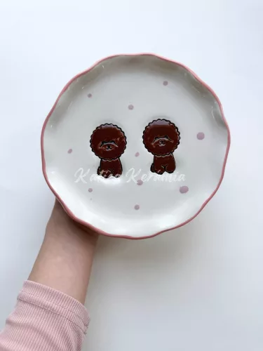 Barna kettes pudlis tányér