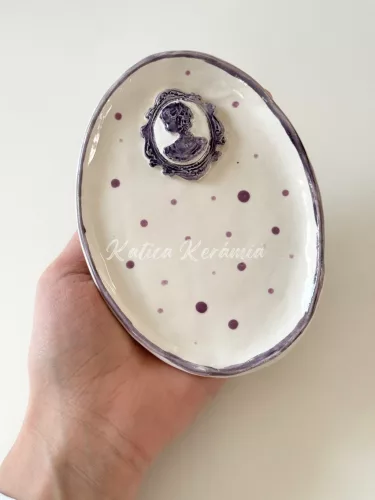 Limitált kollekciós, kézzel készített és festett Bridgerton stílusú kis tányér/ékszertartó