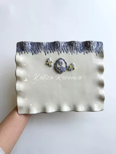Kézzel készített és festett Bridgerton stílusú tálca. Kb 26X18 cm széles.