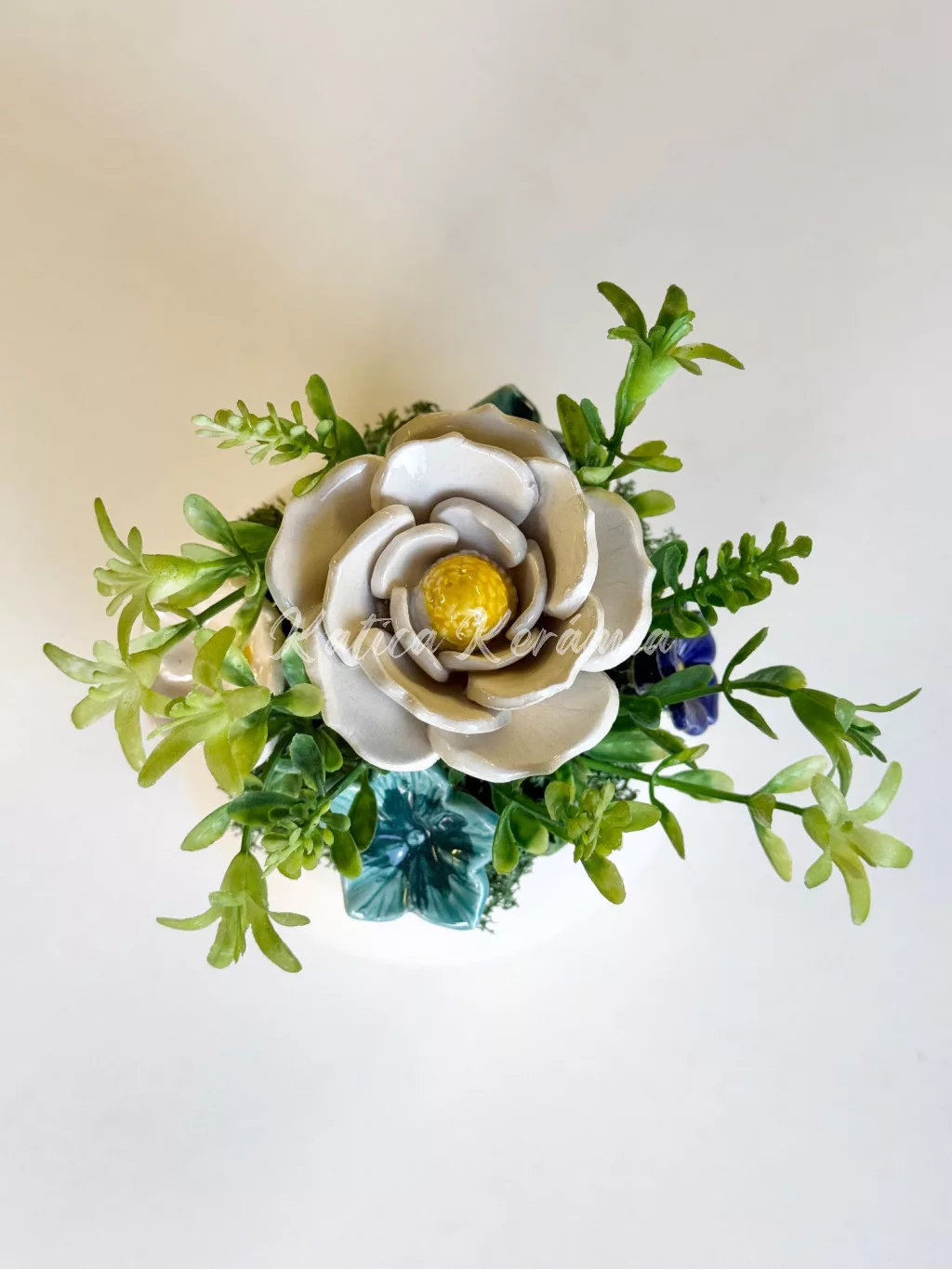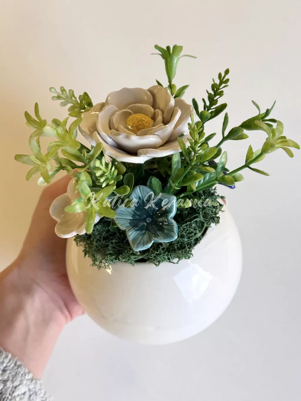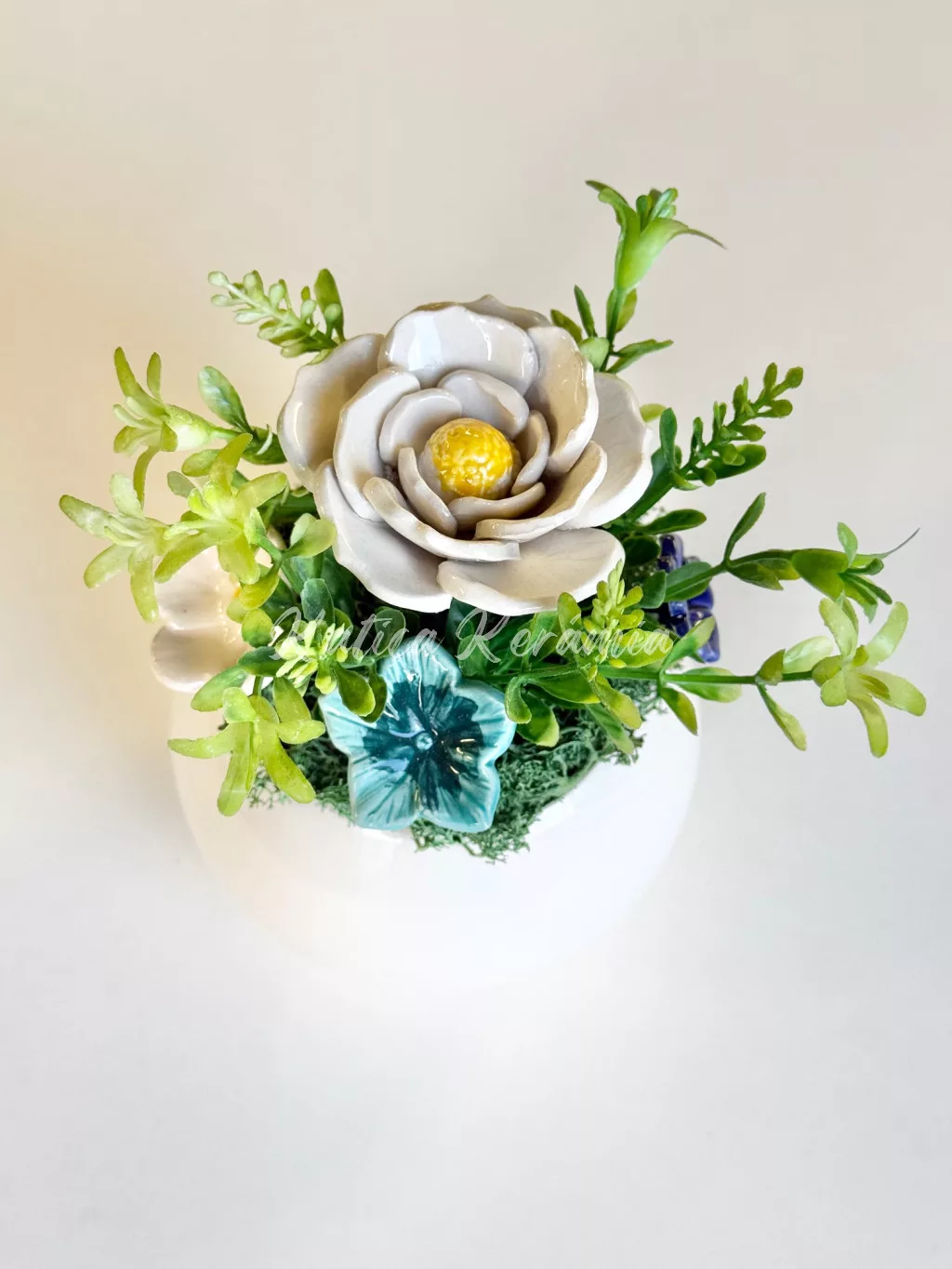 Kézzel készített, kaspóba ültetett kerámia virág dekorációink a természet báját hozzák otthonodba – elhervadás nélkül, éveken át gyönyörködhetsz bennük.
