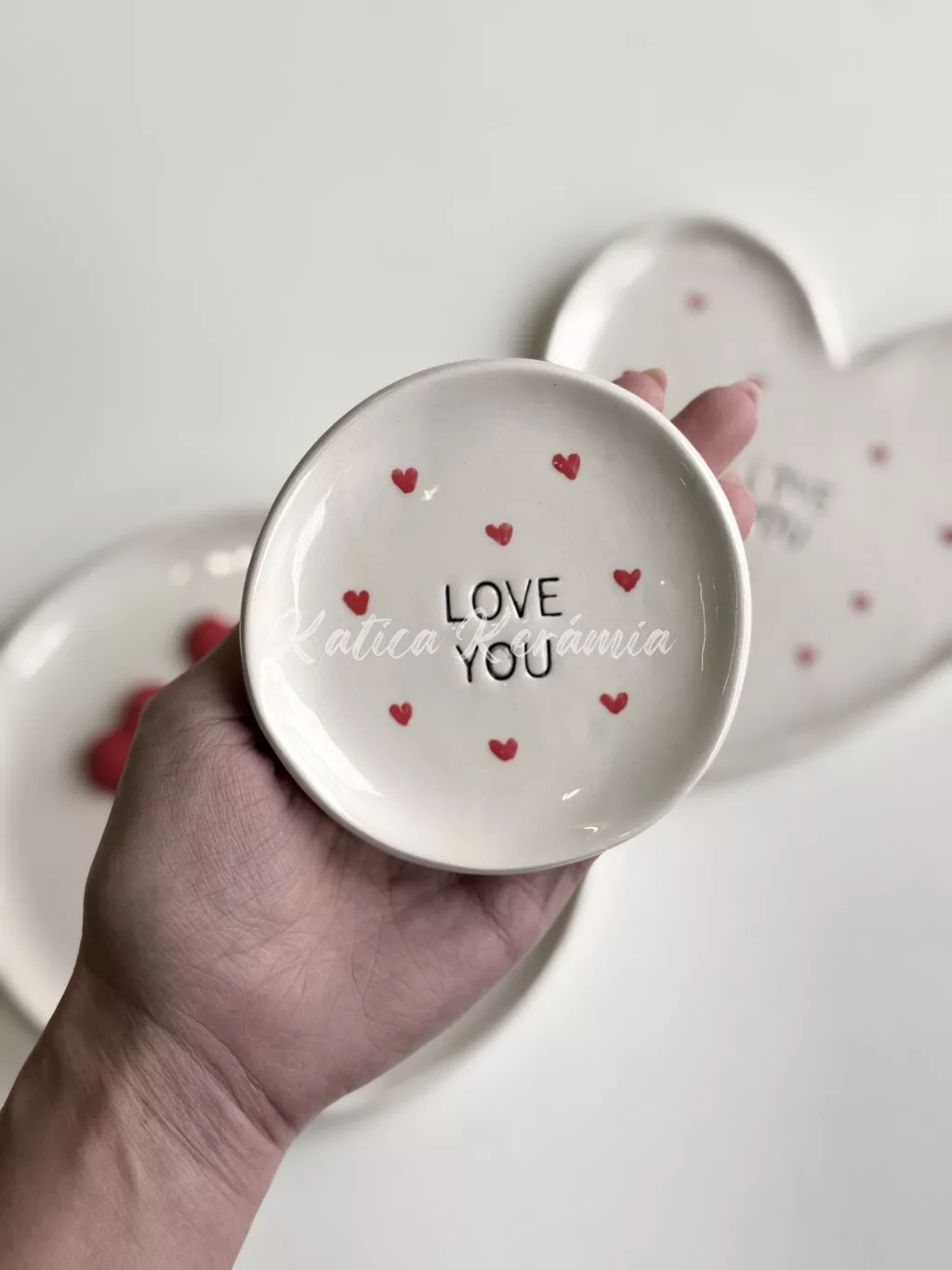 Kézzel készített és festett limitált kollekciós Valentin napi felirtos tányér.
