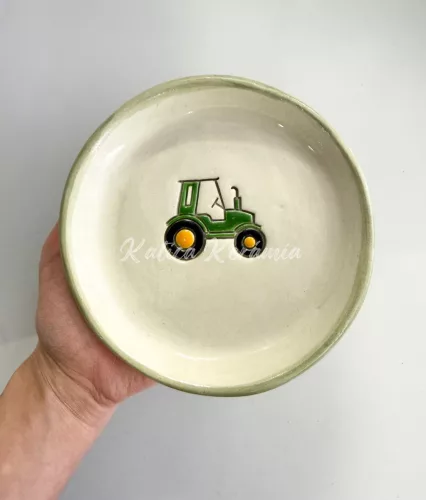 Az ár egy darab, az első képen látható traktoros tányérra vonatkozik, választható méretben. Kicsi lapos kb 14 cm, nagy 18 cm.